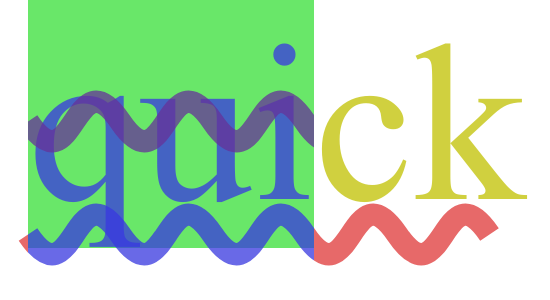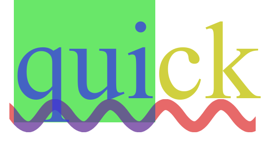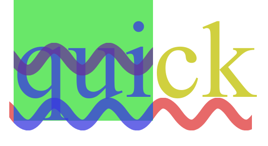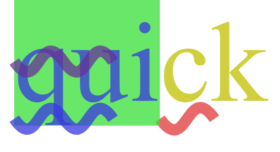 Each layer contains the word “quick” in full with any decorations spanning the whole word, but only part of the layer is shown.