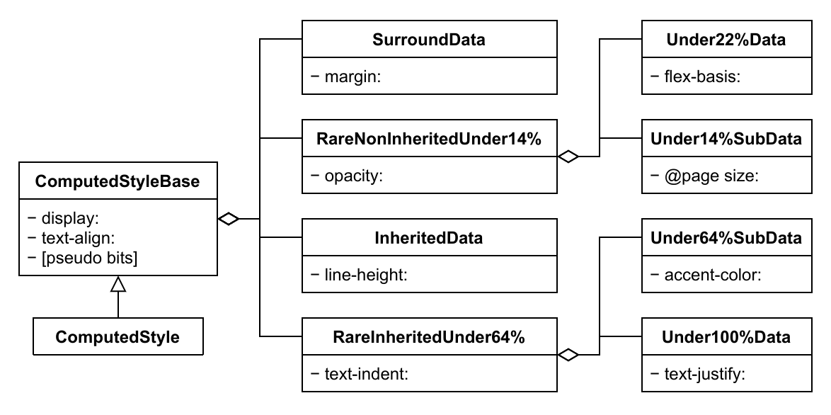 ComputedStyle itself is also interesting. Blink recognises over 600 properties, including internal properties, shorthands (like ‘margin’), and aliases (like ‘-webkit-transform’), so most of the fields and methods are actually generated (ComputedStyleBase) with the help of some Python scripts.